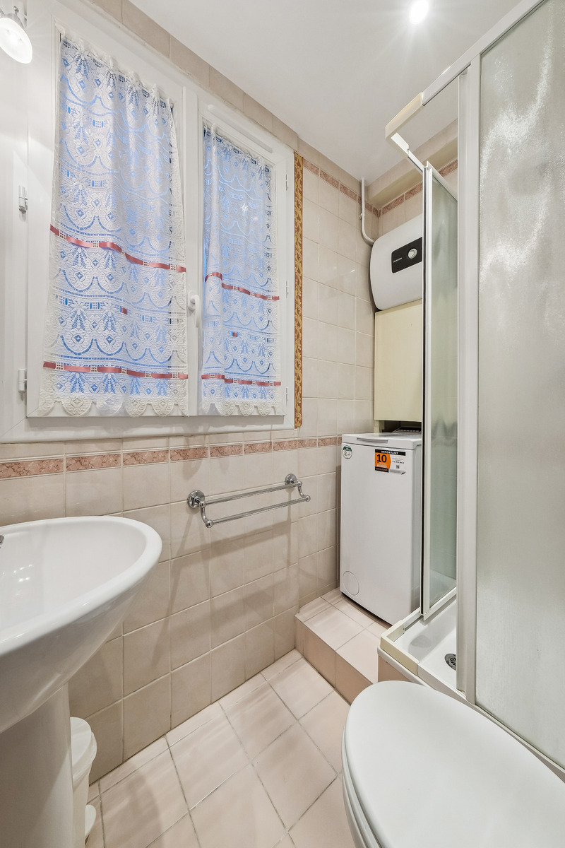 With a surface area of approximately 35 square meters, the apartment is both well arranged and highly functional. It features a separate bedroom with a comfortable double bed, offering a quiet and restful retreat. The bright and pleasant living room is furnished with a sofa bed, providing additional sleeping capacity for guests. The compact kitchen is fully fitted and thoughtfully optimized for everyday use, while the bathroom includes a shower and modern amenities. Despite its modest size, the apartment feels well balanced, practical, and easy to live in perfectly suited for Parisian city living.