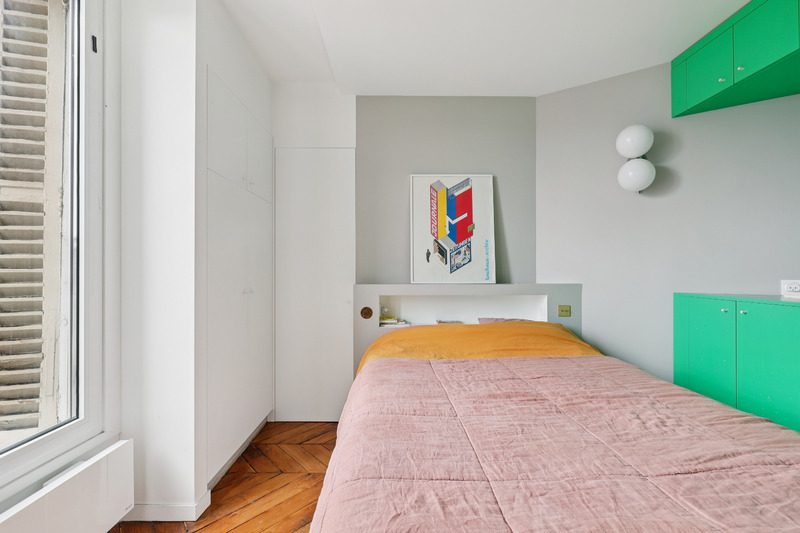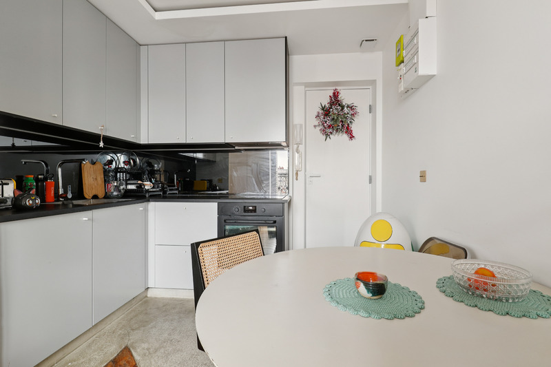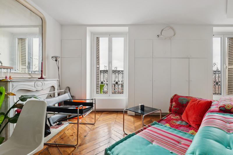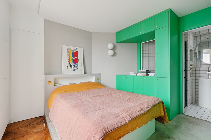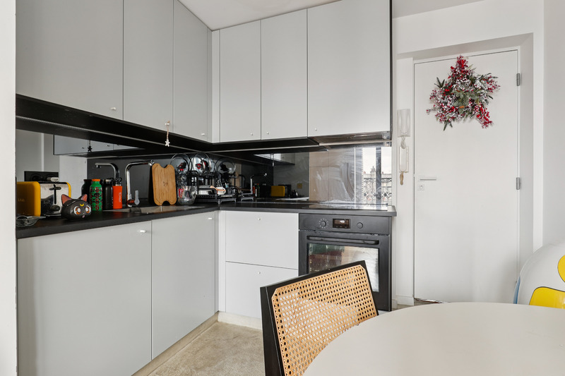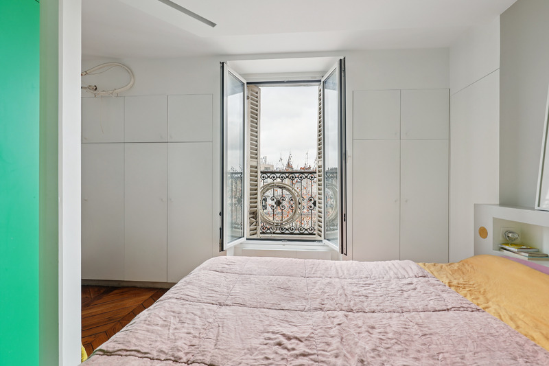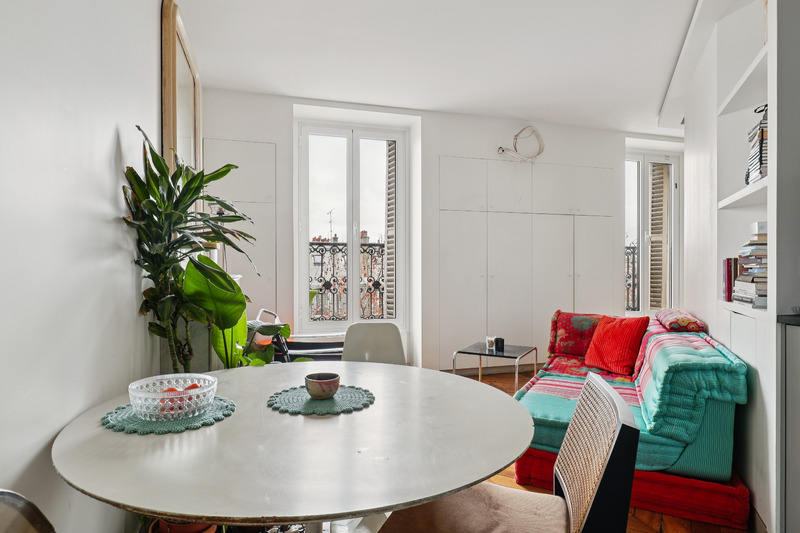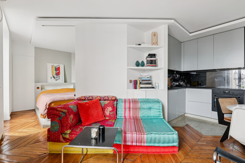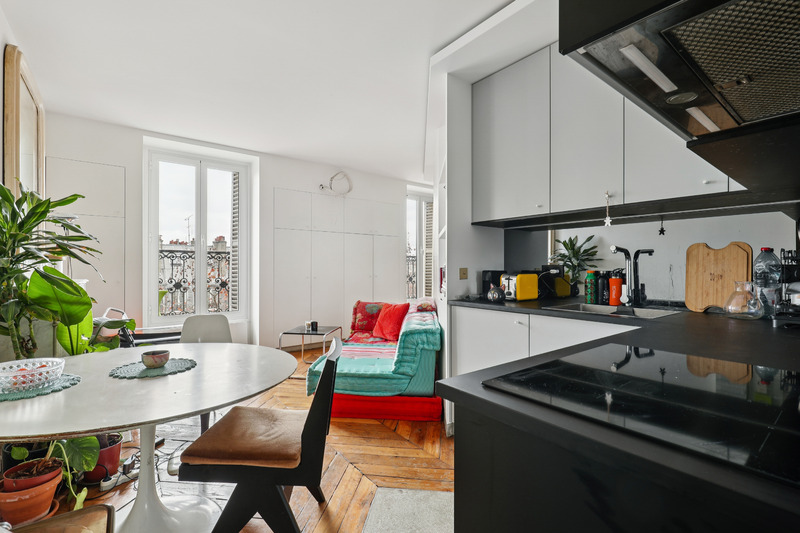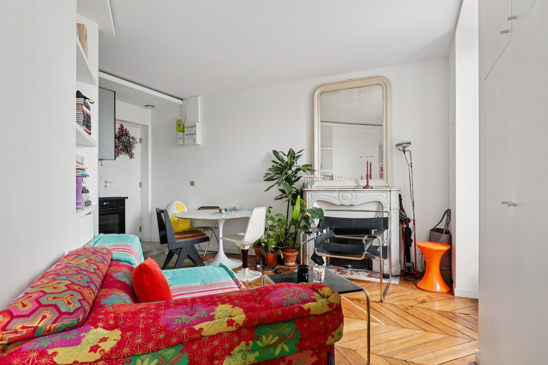 Set on the 5th floor of a well kept Parisian building with elevator access, this generous studio apartment of approximately 30 sqm offers a refined and welcoming living environment. Bathed in natural light, the apartment benefits from an intelligent layout and a contemporary design that enhances both space and comfort. The interiors combine clean lines with warm materials and colorful accents, creating a pleasant and distinctive atmosphere. Two small balconies further enhance the property, offering charming outdoor extensions and open views over the surrounding cityscape.