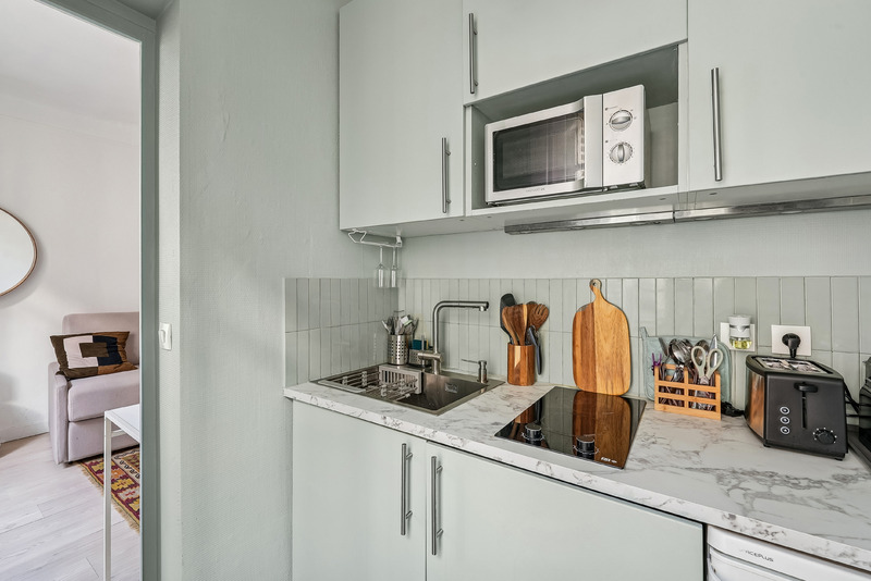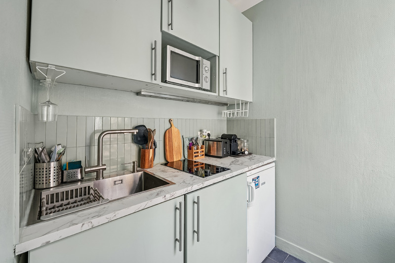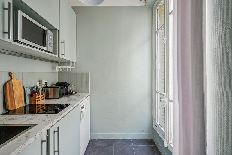 Located on the 5th floor of a well maintained residential building with elevator, this charming apartment offers a refined living experience in the heart of Paris. Bathed in natural light thanks to its large French windows, the property enjoys a peaceful atmosphere while offering a pleasant open view over the surrounding Haussmann style architecture. The careful layout and tasteful decoration create a warm and comfortable setting, ideal for 2 pax and both short and long term stays.